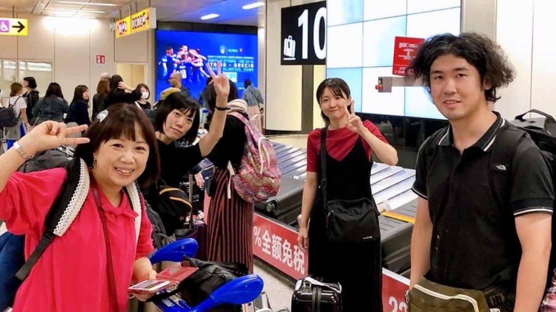 (アコーディオンフェスティバルに参加する生徒さんたちとローマの空港にて)